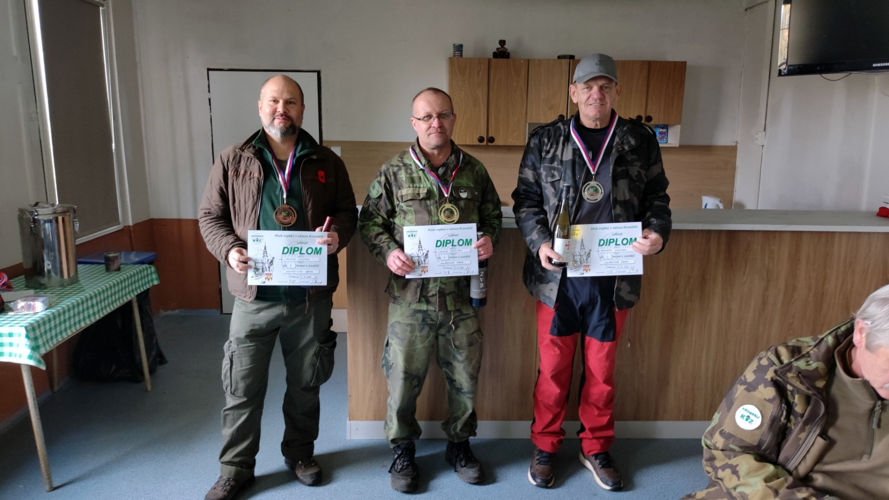 Ale vraťme se zpátky k průběhu dne. Jak to dopadlo? Naprosto přesvědčivě zvítězil se svými 55 zásahy Lubomír Pomališ z domácího klubu KVZ Kroměříž. V souboji o druhou a třetí pozici to bylo už trošku složitější, protože oba adepti trefili shodně 46 běhen. Pro zápočet do hodnocení stačí vždy zásah černého obdélníku, ale v případě rovnosti bodů rozhoduje počet středových zásahů. A protože Tonda Humplík měl na kontě o jednu desítku více, připadla mu ve finále také stříbrná medaile za druhé místo. Třetí příčka a medaile z bronzu byla nakonec odměnou pro Marka Mlčocha z Kroměříže.